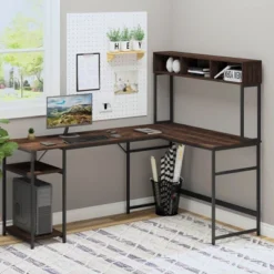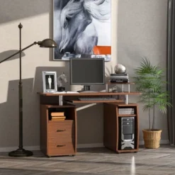 HOMCOM L-Shaped Computer Desk With Storage Shelves, Home Office Desk With Drawers And Cabinets
