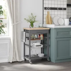 HOMCOM 42″ Rustic Bar Table Industrial Metal Pine Wood Top Adjustable Standing Pub Table