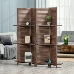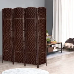 HOMCOM 6′ Tall Wicker Weave 4 Panel Room Divider Privacy Screen – Brown