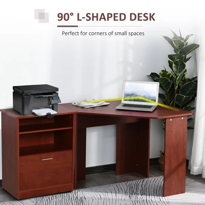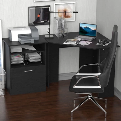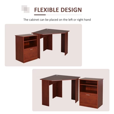 HomCom 2 Piece Corner Computer Desk Workstation With Printer Stand Storage Cabinet