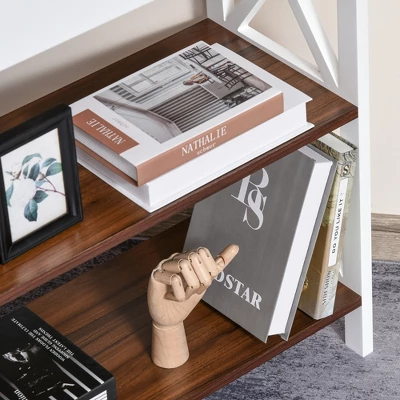 HOMCOM 4-Tier Shelving Bookcase Storage Cupboard With Pull Out Drawer, And Wooden Frame With X Bar Stability, White