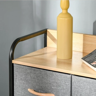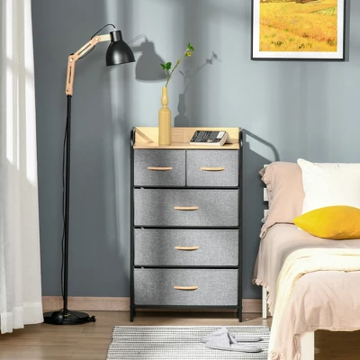 HOMCOM 5-Drawer Fabric Dresser Tower, 4-Tier Storage Organizer With Steel Frame For Hallway, Bedroom And Closet, Light Gray