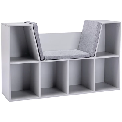HOMCOM 6-Cubby Kids Bookcase, Reading Nook Organizer With Seat Cushion, Toddler Storage Cabinet Shelf For Playroom Bedroom, 40.5″ X 12″ X 23.5″