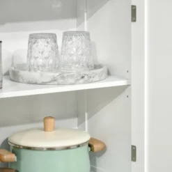 HOMCOM 63″ Small Buffet With Hutch, 4-Door Kitchen Pantry, Freestanding Storage Cabinet With Adjustable Shelf For Dining Room, Living Room, White
