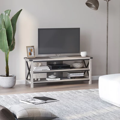 HOMCOM Ample Storage Console TV Stand With 2 Cable Management Hole, Entertainment Center Classic Cabinet For Living Room Bedroom, Fits For 60″ TV
