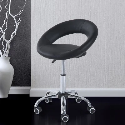 HOMCOM Crescent Rolling Salon Stool With Adjustable Height, Breathable Open Back, Foam Cushion Seat, And 5 Caster Wheels, Black