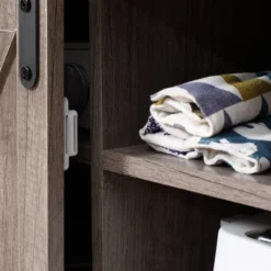- Multifunctional Storage: You can set serving dishes on the top, place the boxes and plastic containers on the open shelf, and put away cups or napkins behind the sliding barn door to keep your belongings organized.