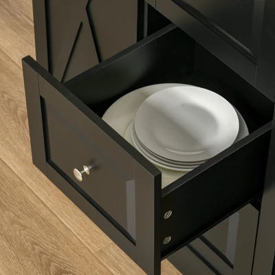 - All-in-One Organization: Elevate your kitchen game with the built-in spice rack, towel rack and metal drawer handles of this versatile kitchen cart. It keeps your kitchen essentials within arm’s reach, streamlining your cooking process and fueling your culinary creativity.