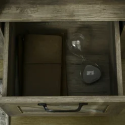 - Farmhouse Style: Select a gentle, down-home look for your room. The farmhouse accents, such as barn-style drawer panel, wood grain tabletop and beautiful metal handles, are what distinguishes this sofa side table. It has a lot of charm!