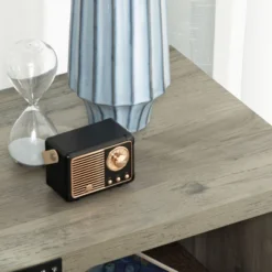HOMCOM Farmhouse Side Table With 1 Drawer, 1 Open Shelf And Tabletop For Living Room, Set Of 2, Gray Oak