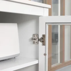 - Upgrade Your Storage: The large furniture features five tiers for extra storage, and if you have taller items, the upper and lower shelves can be adjusted to fit items like pitchers, stand mixers, and blenders.Keep organized behind the 2 glass doors, so your items stay safe and dust-free. If you have taller items, the upper and lower shelf can be adjusted to fit items like pitchers, pasta containers and blenders.