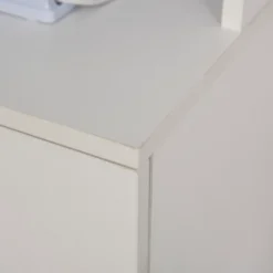 - CLASSIC DESIGN: Simple and elegant design with clean white surfaces and minimal metal handles can be perfectly integrated into your home decoration, make it become a functional hutch cabinet in any room.