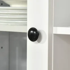 HOMCOM Freestanding Rustic Buffet With Hutch, 4 Doors Farmhouse Kitchen Pantry Cabinet, Microwave Stand With Beadboard Panel, Drawer, White