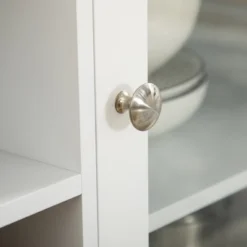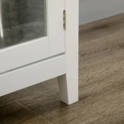 HOMCOM Glass Door Kitchen Sideboard, Buffet Cabinet With 6-Bottle Wine Rack And Stemware Racks, Coffee Bar For Living Room, Dining Room, White