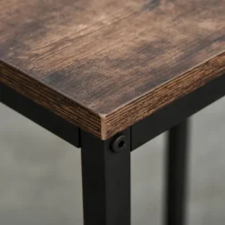 Accent your dining area and seat guests with this space saving dining table. Two-tone construction of rustic wood and dark metal makes the bar table with stools a distinct statement in a modern setting. Armless stools allow free movement for an unrestricted sitting experience and can be neatly located under the desk for space-saving convenience. Enhance your current home decor with this HOMCOM console table with stools.