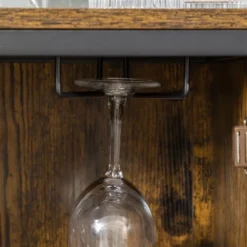 HOMCOM Industrial Wine Rack For 9 Bottles, Retro Liquor Cabinet With Glass Holders, Mesh Doors, And Storage Shelf For Home Bar, Dining Room, Brown