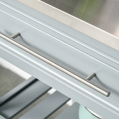 HOMCOM Kitchen Island With Stainless Steel Top, Traditional Kitchen Island With Storage, 2-Tier Open Shelves, Drawers, Light Gray