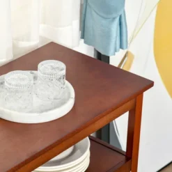 HOMCOM Kitchen Sideboard, Storage Buffet Cabinet With Open Shelf, Glass Door Cabinet And Adjustable Shelf For Living Room, Cherry