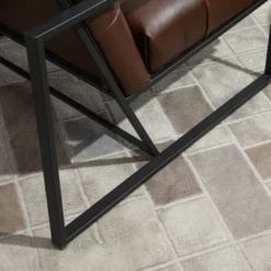 HOMCOM Mid-Century Modern Accent Chair Faux Leather Sofa Button Tufted Armchair With Metal Frame, Brown