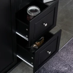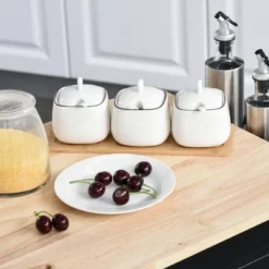 HOMCOM Mobile Kitchen Island Storage Trolley Cart On Wheels With Dropleaf Top, Towel/Spice Rack, 3 Drawers, 2-Door Cabinet