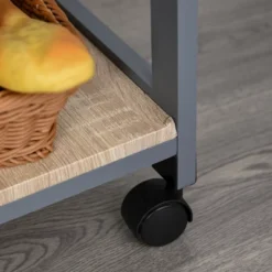 This coffee cart is compact and ideal for small space needing a bit more storage. A storage drawer, a slide out basket, 2 pull out trays and an open shelf of this island table for kitchen provides ample space for supplies and accessories. Each storage tray on this kitchen storage rack can be used as an independent serving tray. The easy-roll wheels on the kitchen storage cabinets allows you to move wherever it is needed most, and the neutral color is suitable for any home furnishings.