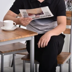 HOMCOM Modern 5-Piece Wooden Counter Dining Kitchen Table Set, 1 Table 4 Chairs Metal Legs, Suitable For Outdoors, Brown