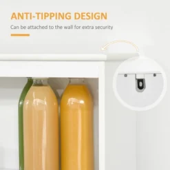 - Safety First: Safety is our first priority for you and you family which is why there is an anti-tipping device on the back of this kitchen storage pantry that you can fix to the wall to ensure it will not fall over.The MDF wood has a water-resistant coated paint finish if there are spills or messes.