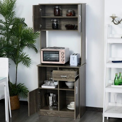 HOMCOM Modern Kitchen Buffet With Hutch Pantry Storage, Microwave Counter, 2 Cabinets, And Adjustable Shelves