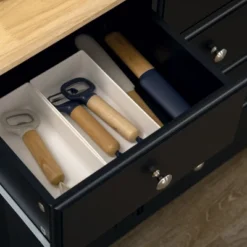 HOMCOM Modern Sideboard With Drawers, Buffet Cabinet With Storage Cabinets, Rubberwood Top For Living Room, Kitchen, TV Stand Up To 60 Inches, Black