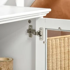 HOMCOM Modern TV Stand Cabinet For TVs Up To 60 Inches, Entertainment Center With Drawer And Glass Doors For Living Room, White