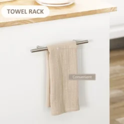 HOMCOM Rolling Kitchen Island Cart, Portable Serving Trolley Table With Drawer, Adjustable Shelf And 2 Towel Racks, Cream White