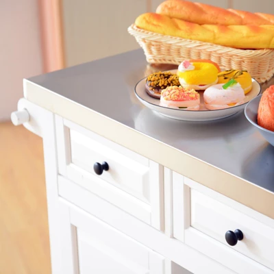 - Optimized Design: Featuring a timeless color palette and a sleek stainless steel countertop, this kitchen island on wheels exudes modern elegance. Its versatile aesthetic seamlessly integrates with a variety of decor styles in your kitchen, dining area and more.