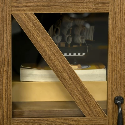 HOMCOM Rustic Kitchen Sideboard, Glass Door Buffet Cabinet, TV Stand With Adjustable Shelf For Dining Room, Natural
