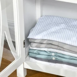 - AMPLE STORAGE SPACE: This kitchen sideboard has two storage cabinets, each with an interior shelf that’s adjustable to fit different-sized items you need to store like daily accessories, utensils, dry goods, and towels or books. The wide tabletop lets you display photo frames, plants, or other decorations.