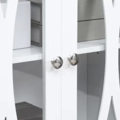 HOMCOM Sideboard, Buffet Cabinet With Storage, Adjustable Shelves, Credenza With 3 Glass Doors For Living Room, Study, White