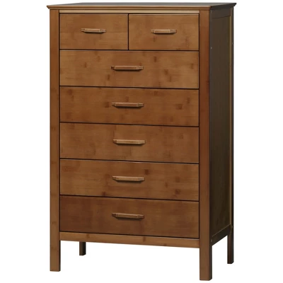 HOMCOM Tall Dresser For Bedroom, 7 Drawer Dresser, Chest Of Drawers With Bamboo Frame, Brown