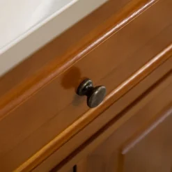 - Adjustable Shelving: There is a 3-position adjustable shelf in three of the cabinets of this large kitchen island, which allow you to accommodate in case of a belonging with extra height.