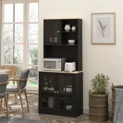 HOMCOM Kitchen Island Cart Rolling Trolley Cart With Drawer, Storage Cabinet & Towel Rack